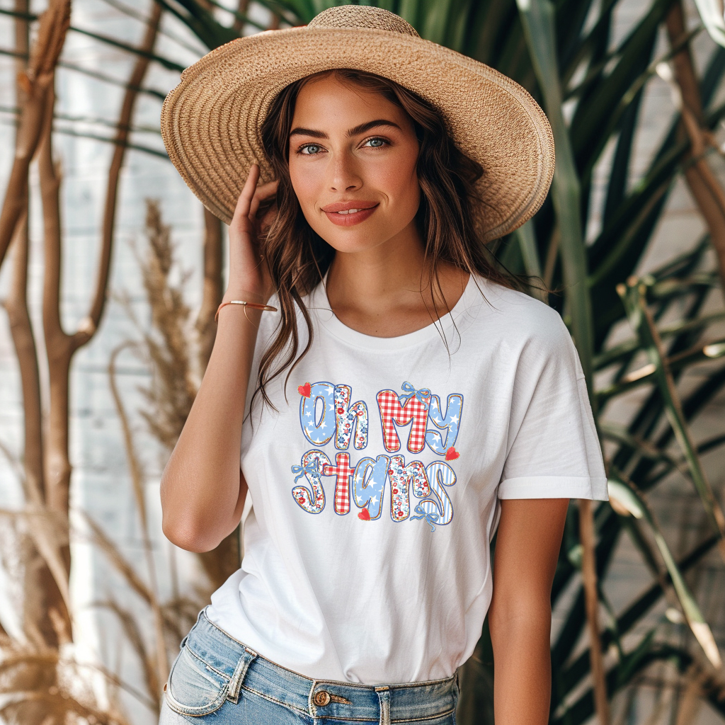 The "Oh My Stars" graphic tee makes a delightful addition to your casual collection. Order yours today and let your style shine!