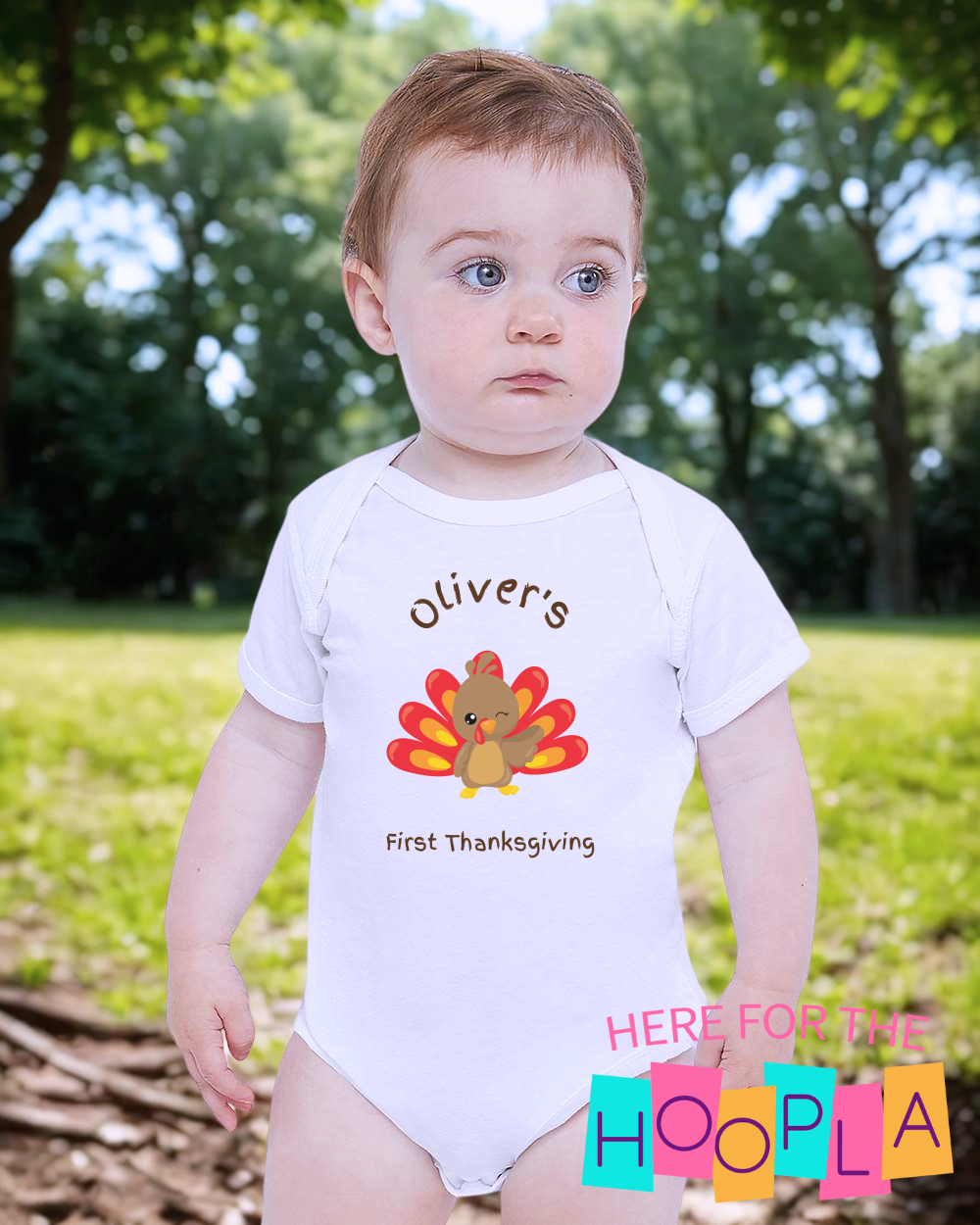 Personalized Thanksgiving Baby Bodysuit, Cute Thanksgiving Gift, Custom Name Baby Clothes, First Turkey Day